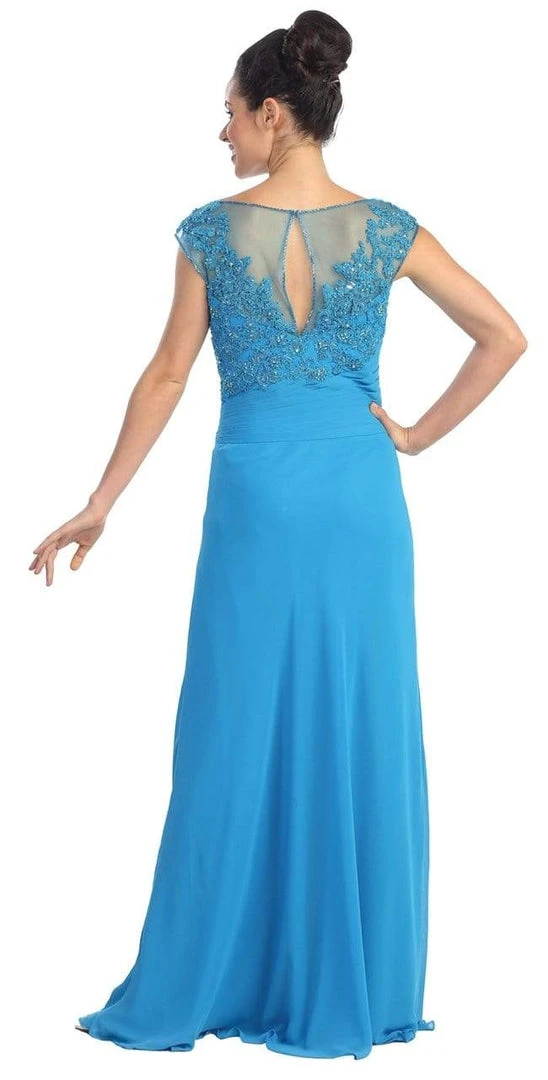 | Details: | Zipper, Illusion fabric, Cap sleeves, Chiffon, Beading, Pleats, A-line skirt, Back keyhole |