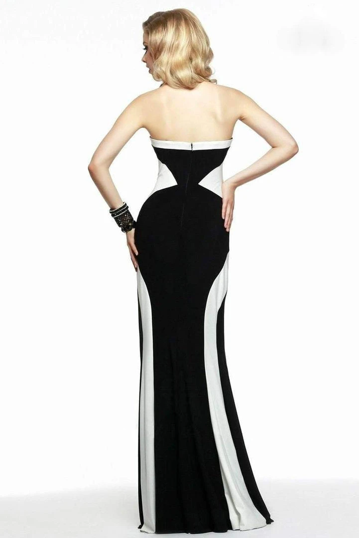 Modern day sophistication exudes with this Faviana 7572 dress. This form fitting strapless gown with a polygonal sweetheart neckline exhibits block color design that highlights your hourglass figure. Go and celebrate contemporary feminism in this modish Faviana piece!