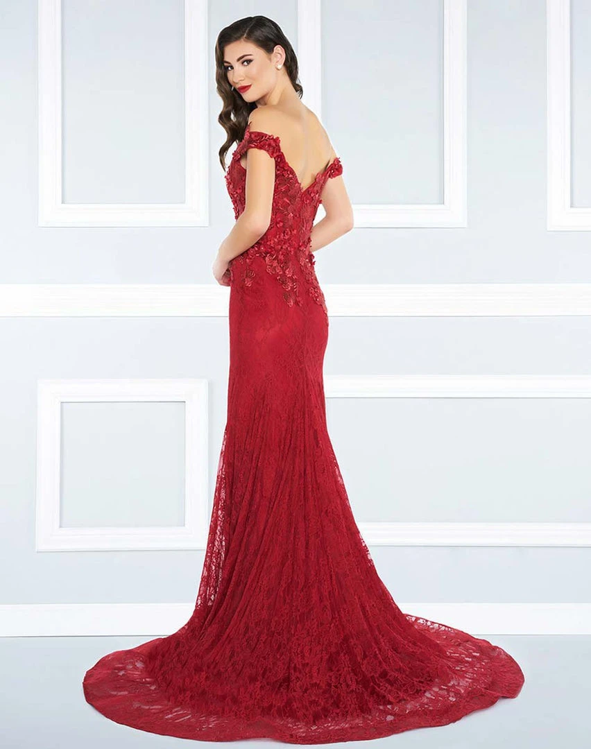 Enter the party and do that walk of a regal beauty in Mac Duggal 66214 Black White Red. This dress is off-the-shoulder with a floral embroidered fitted bodice. The nipped waist gives way to a pronounced Mermaid skirt. This gown finishes with a full length hem with a sweep train. Rich lace fabric creates gorgeous texture throughout. Feel beautiful for the special occasion in this Mac Duggal creation.