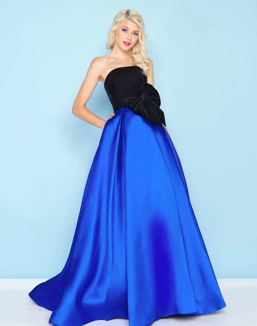 | Details: | Bow detail, Strapless, Ballgown skirt, Pleated, Mid-open back, Back zip closure |