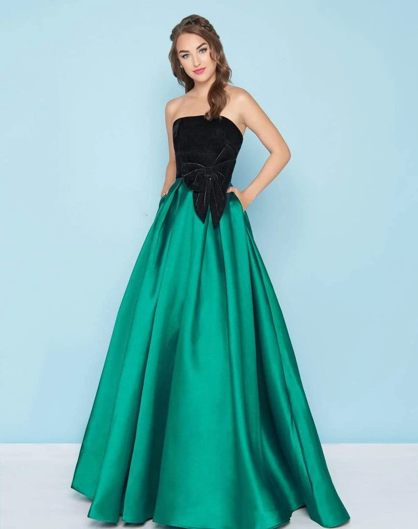 Look jaw dropping in this dramatic creation by Mac Duggal Ballgowns 66318. Fashioned in a strapless velvet bodice accented with velvet side bow giving way to a box pleated Mikado full skirt. This dress has a straight across neckline and a mid-open back design for a skin revealing feature. This Mac Duggal gown definitely parades the elegant and classy style.