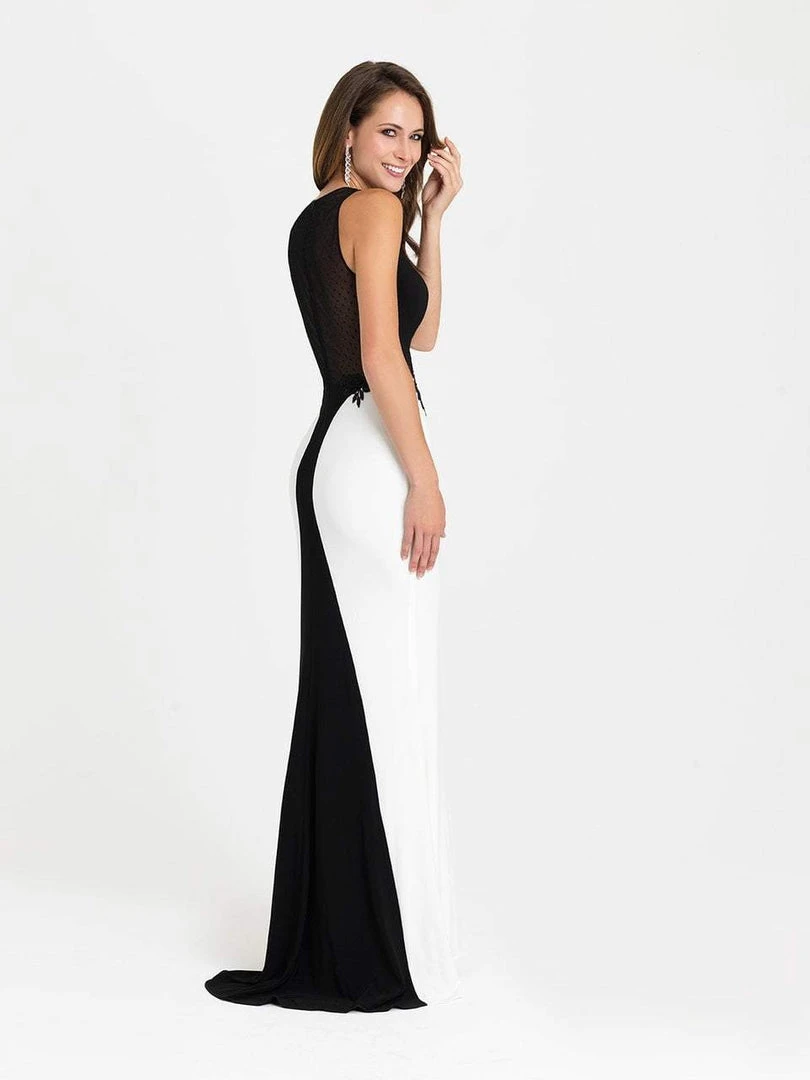 Sophisticated colorblocking is the name of the game, accented by a Swiss dot illusion panel at the neckline.