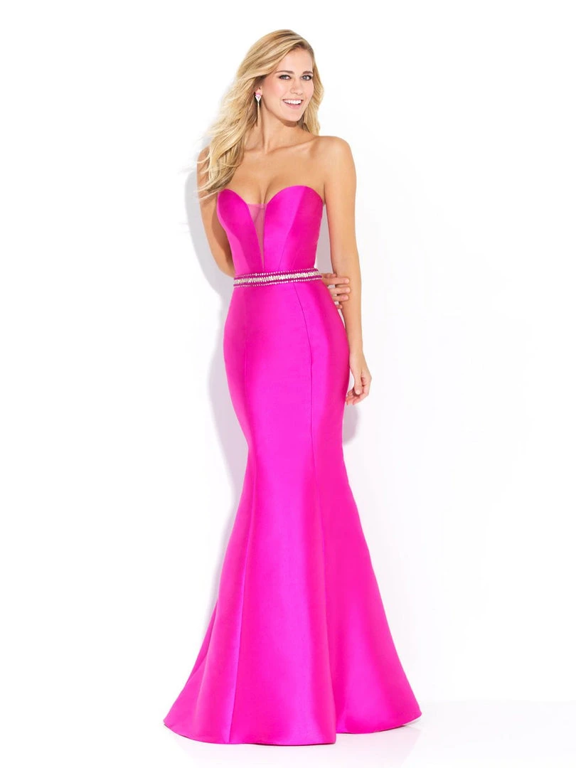 Silk Mikado keeps this gown classic, while the sheer illusion neckline keeps it interesting.