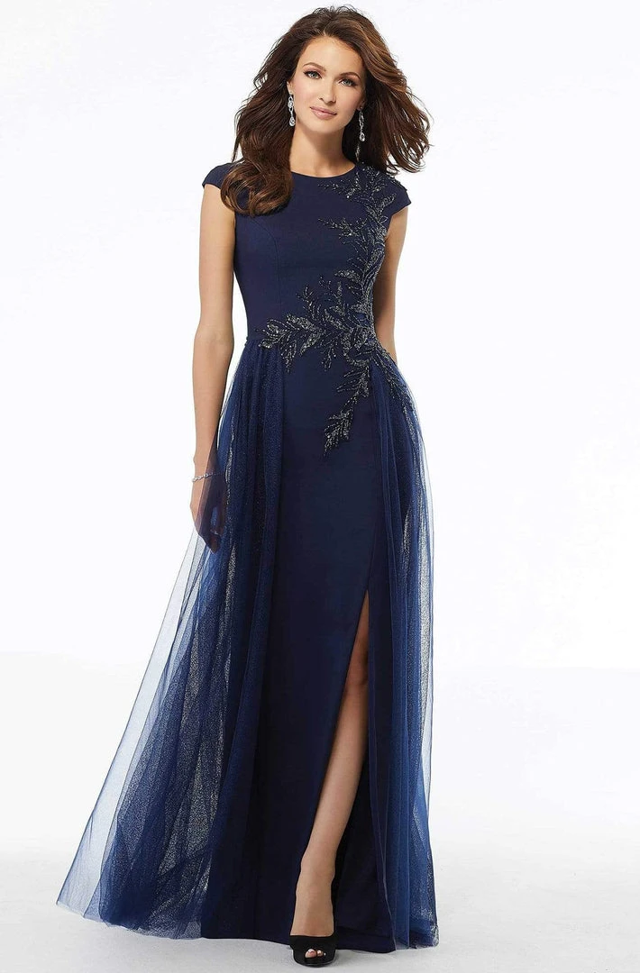 | Details: | Cap Sleeves, Fitted, Princess Seams, Thigh High Slit, Net Overskirt, Full Length, Full Back, Tonal Beadwork, Matching Stole, Sweep Train |