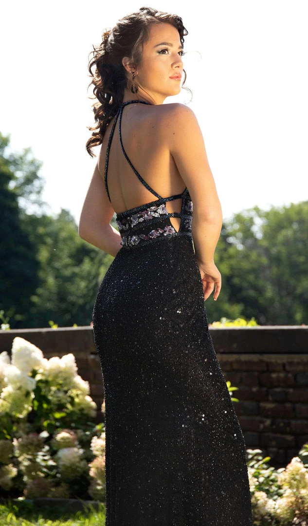 Promote attention-grabbing style in this lavishly festooned evening gown from Primavera Couture 3216. This ravishing style is bedecked with beads and sequins highlighting your figure that will sure to steal the show. A flattering sleeveless V neckline with side and back cutouts tops this eccentric design. The curve-flattering skirt features a front side slit and finishes with a back-sweep train. This stunning look by Primavera Couture will sure to make a grand entrance show.