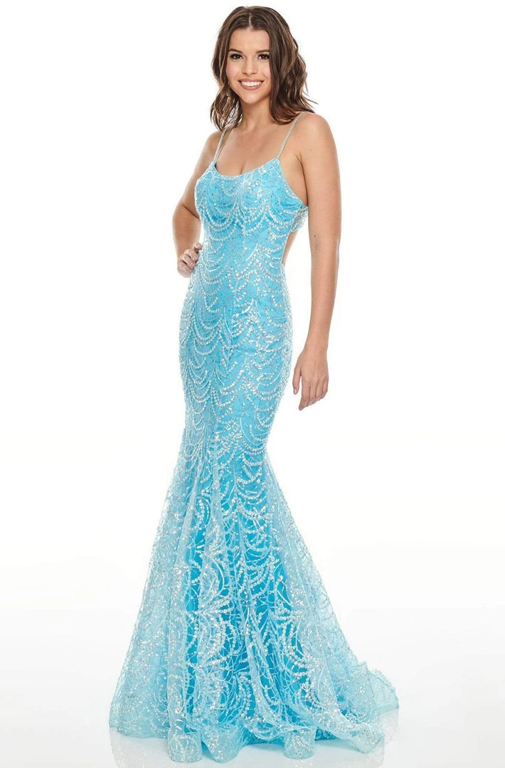 Flaunt your figure in this fabulous Rachel Allan 7112. This sleeveless beauty comes in a scoop neckline, beaded straps, sequin details all over the dress, single bandeau, an open back, and a zipper closure. The skirt features a trumpet silhouette with horsehair hem detail, and a sweep train. Dive into a divine event in this luxe Rachel Allan creation.