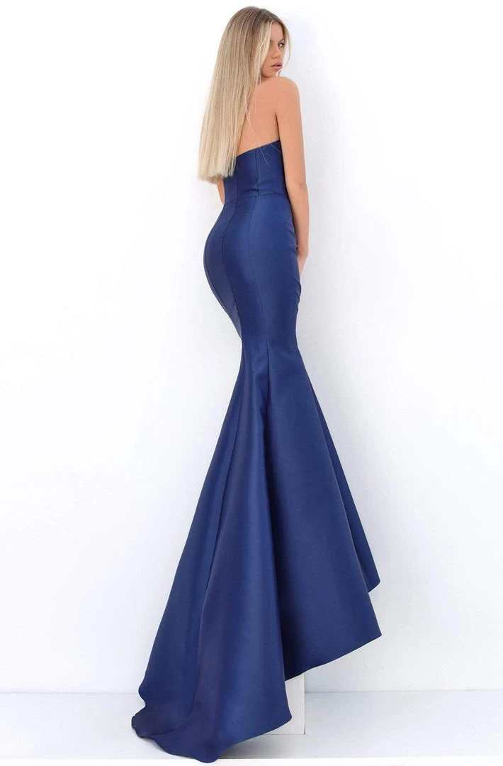 Let this eye-catching Tarik Ediz 50632 evening gown make you the topic of conversation. This ultra-chic design is crafted in solid taffeta, features a strapless modified sweetheart neckline a mid-open back. This sleek creation is tapered with front and back princess seaming that highlights your natural curves. The floor length skirt has a vivid mermaid silhouette with a thigh-high leg slit and ends with a beautiful court train. This gorgeous Tarik Ediz design is a stunning selection for your next black tie affair. Model is wearing Navy color.