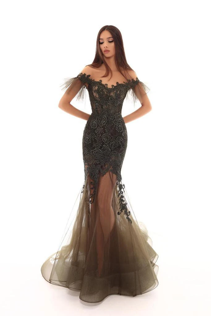 Mesmerize everyones this dramatic dress by Tarik Ediz 93645. Fashions an illusion neckline with rule sleeves. The fitted bodice has a low V-back, a zipper closure, and is lavishly adorned with beading and appliques. The skirt fits at the thighs and flares at the bottom to a mermaid silhouette completing the look in a sweep train finish and horsehair hemline. Showcase your amazing figure with this curve-hugging Tarik Ediz dress. Find more prom dresses!