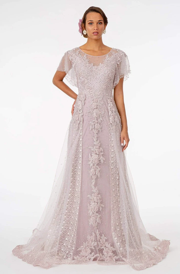 Glamour up for that special night in this exceptionally crafted GLS by Gloria GL2881 creation. Festooned with rhinestone ornate lace appliques, this beauty flourishes an illusion jewel neckline with framing sheer flutter sleeves. Embroidered accents trail the illusion full back. Draped with an overskirt that trails into a sweeping finish, the trumpet skirt voluminously flares to drape on the floor. Make sweet music all night long in this GLS by Gloria masterpiece.