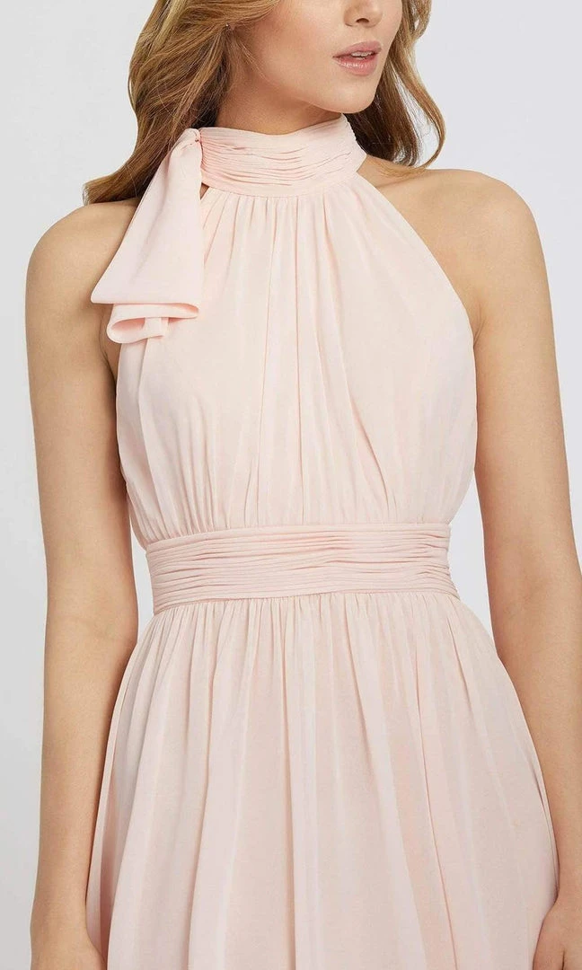 Revel in a style in this classy Ieena Duggal 55035 creation. Embellished with soft ruching on the bodice and choker detail, this dress has a high halter neckline with a racerback. Crowned with a ruche-detailed waistband, the lush A-line skirt cascades to the floor with a full length hem. Be the very picture of elegance in this Mac Duggal masterpiece.