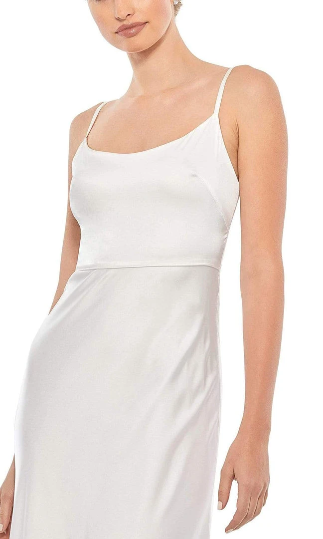 Feel like a goddess in this divine Ieena Duggal 55381 creation. Crafted in satin, this spaghetti strap dress reveals a scoop neckline and scoop back. The A-line skirt flourishes fluttering tiers the ends in a full length hemline. Grace every event in style in this Mac Duggal masterpiece.