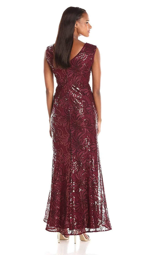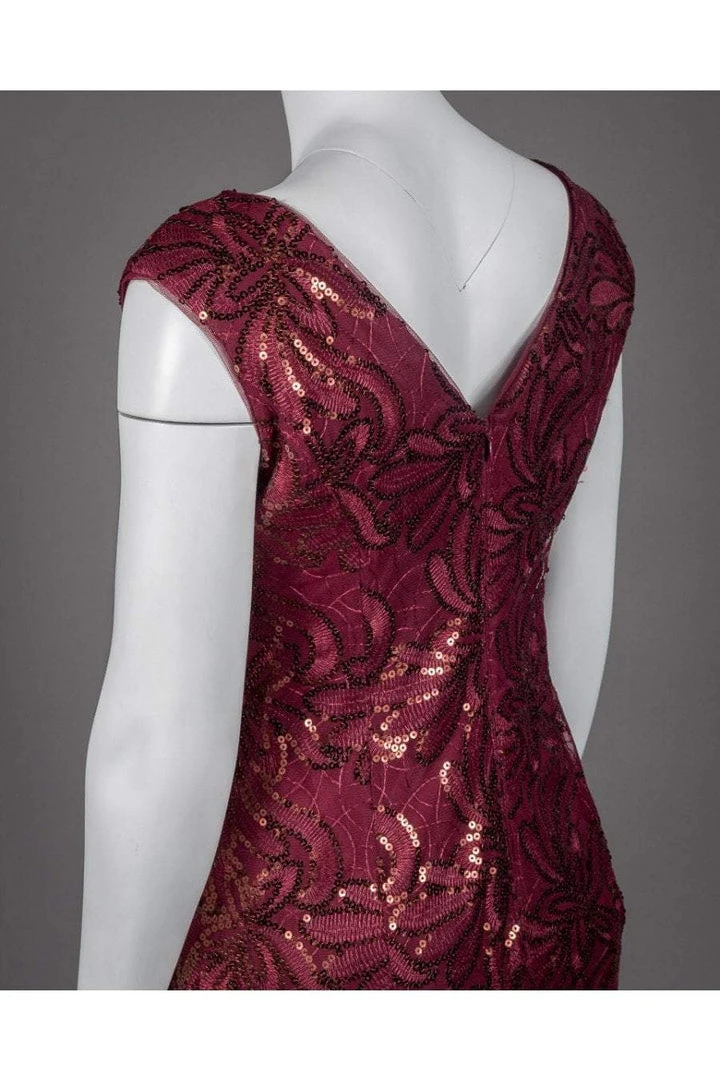 | Details: | Cap Sleeves, Floral Sequined, Beaded V-Design, V-Open Back, Back Zipper Closure, Full Length Hem |