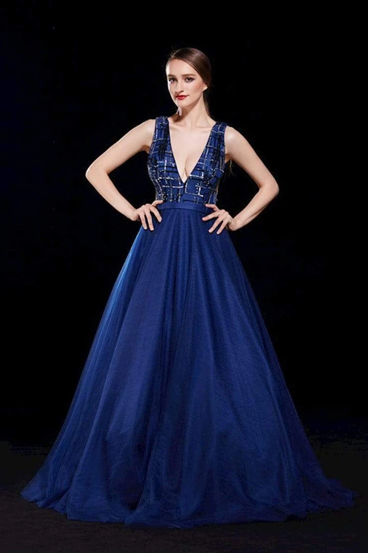 | Details: | Sleeveless, Sequined Bodice, Plunging Cutout Sides, Slender Waistband, V-Open Back, Back Zipper Closure, Sweep Train |