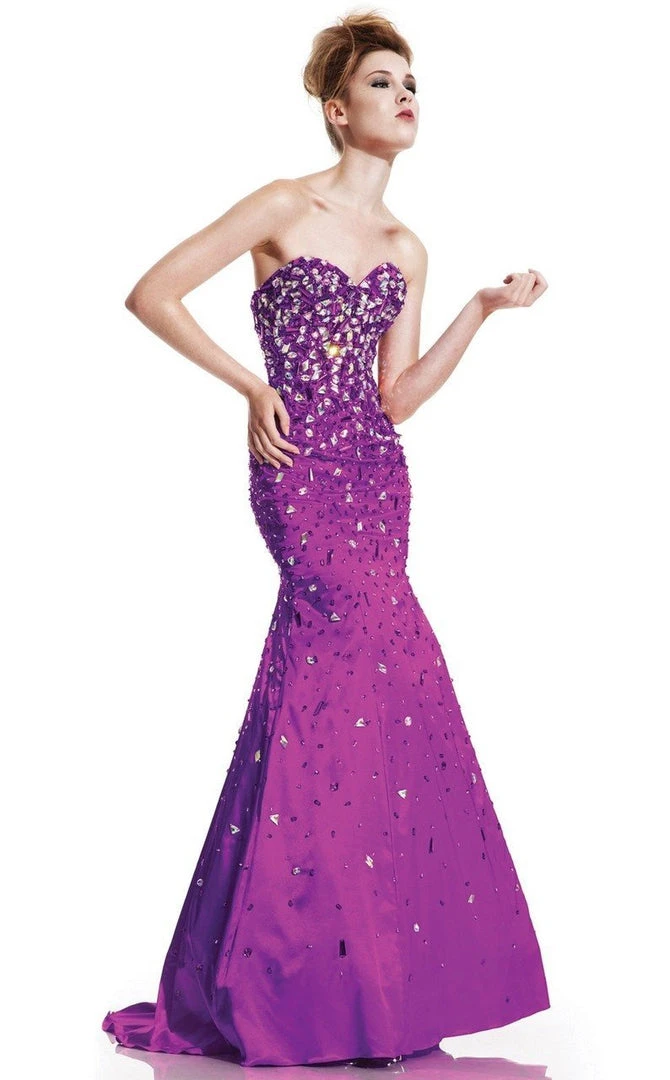 | Details: | Satin, Strapless, Crystal, Corset Boning, Back Zipper Closure, Full Length Hem, Sweep Train |