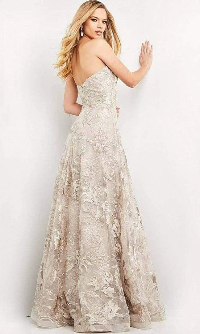 You are sure to be the life of the party when you are wearing this dazzling Jovani 04441. An A-line silhouette dress that parades a sweetheart neckline and stapless. The dress is made with floral lace fabric and it is embedded with beads throughout. The dress is floor length that makes your walk glamorous. At the beck, it is mid open back to show some skin for an alluring look. It is also has a back zipper for security. Exhibit your softer side in this delightful evening gown by Jovani.