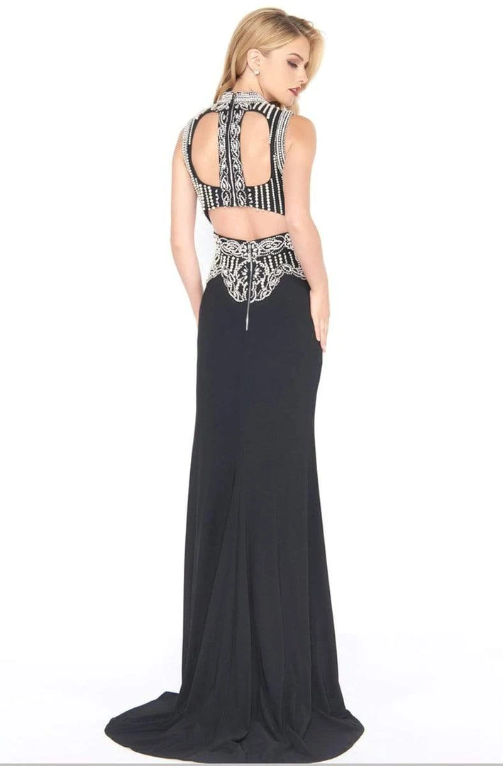 | Details: | Sleeveless, Jersey, Pearl Accents, Beaded Waistband, Scalloped Ornaments, High Slit, Multi-Cutout Back, Back Zipper Closure, Sweep Train |