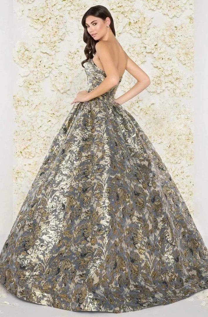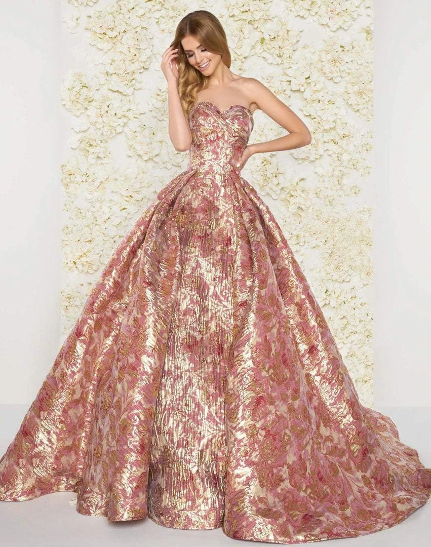 | Details: | Metallic fabric, Floral print, Strapless, Pleated Skirt |