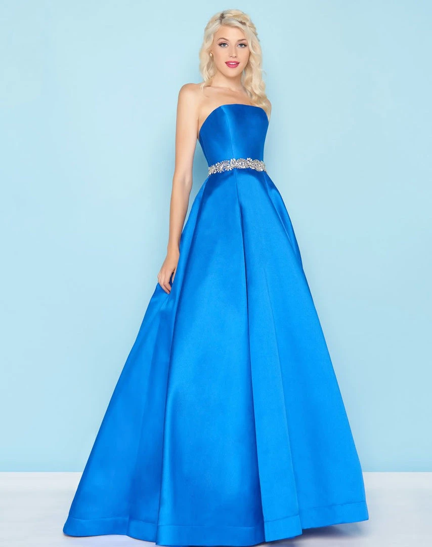 Look every bit like the modern princess that you are as you shimmer in beauty in this fascinating Mac Duggal Ballgown 66326H creation. Sculpted in a lustrous Mikado fabric, this glamorous piece shows a straight-across neckline paired with a dainty mid-open back on a strapless bodice. Crowned with a stunning display of intricately arranged jewels along the natural waist, lush box-pleats cascade in a voluminous flare that completes with a subtle sweeping train. Inspire adoring glances and odes of admiration in this mesmerizing Mac Duggal masterpiece.