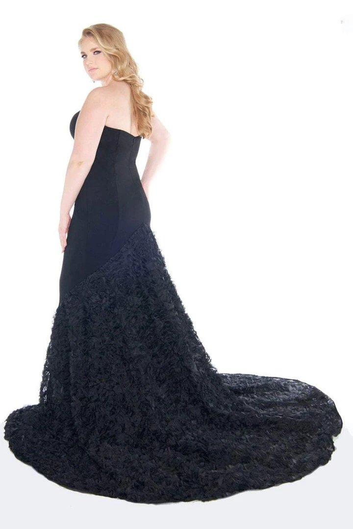 Make a memorable splash at your upscale evening in this lux formal dress by Mac Duggal 66390. This strapless dress features a deep sweetheart neckline with sheer inset as seams sculpt the bodice. Tailored with a mid-open back, the stunning ensemble forms a full length mermaid skirt accented with rosette textured chapel train. Look brilliant for the big party in this Mac Duggal dress.