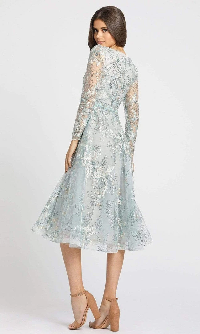 Strut your stuff in this head-turning Mac Duggal 67540. An A-line dress parades a v-neck neckline and a long sheer sleeves. It is also made with sequins throughout. The dress is a floral design for girly look and the skirt is flowy. The back has a zipper for security. This design by Mac Duggal will definitely parade your elegant and classy style on your next formal occasion.