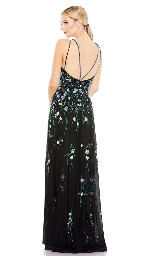 Make it a moment to shine in this Mac Duggal Couture 9172 evening dress. Adorned with intricate floral sequin appliques, this piece flatters with a sleeveless and V neckline supported with dual spaghetti straps which lead to an open back. To complete this look the pleated A-line skirt is tailored with a high-leg slit for a sexier appeal. This stunning Mac Duggal creation is sure to get you noticed.