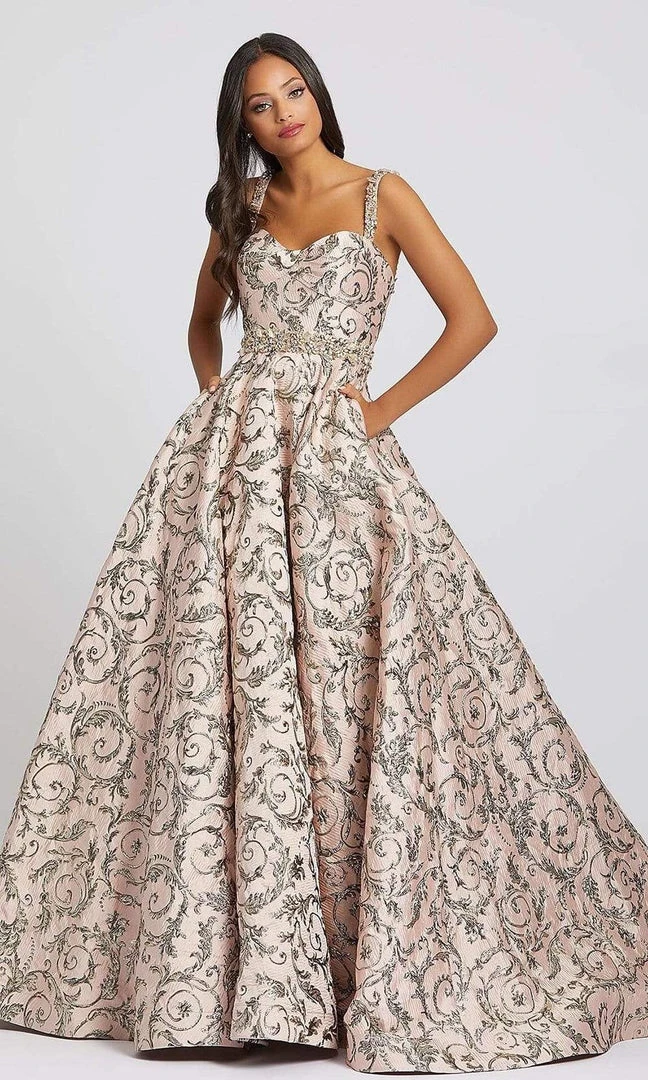Shine through the night in this mesmerizing design by Mac Duggal Prom 67114. This embellished gown features a sleeveless, sweetheart neckline with thin straps. The gown has a fitted bodice and the ballgown skirt is styled with side pockets and a sweep train finish. This Mac Duggal gown will make sure you turn heads all night long.