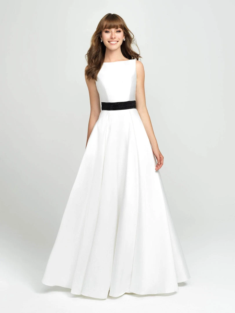Be ready to fascinate everyone in this dress by Madison James 19-145. This mikado beauty glams in a sleeveless, bateau neckline with waist adorned with embellishments. The back has a V-cut and a zipper closure. From the waist flourishes a pleated A-line skirt that runs at full length hem. Be in this gorgeous Madison James creation and leave a lasting impression.