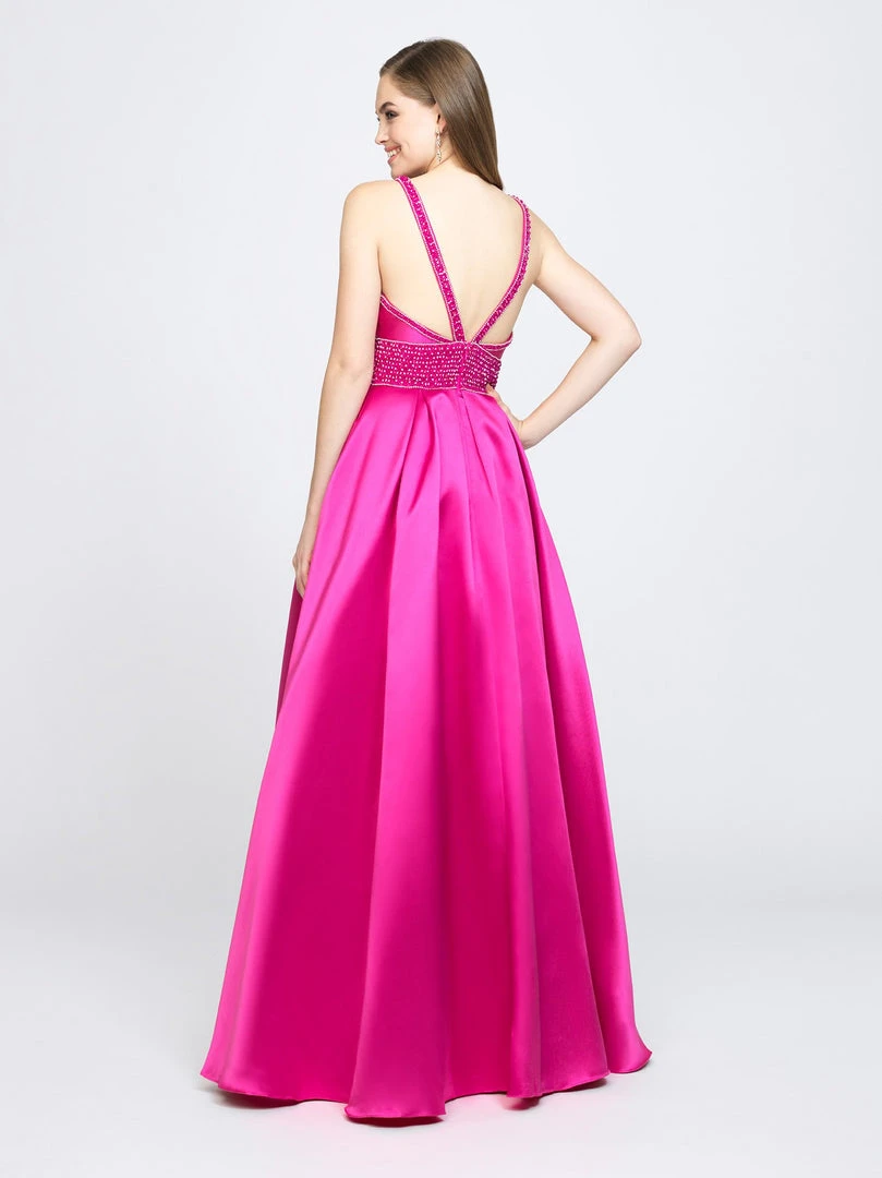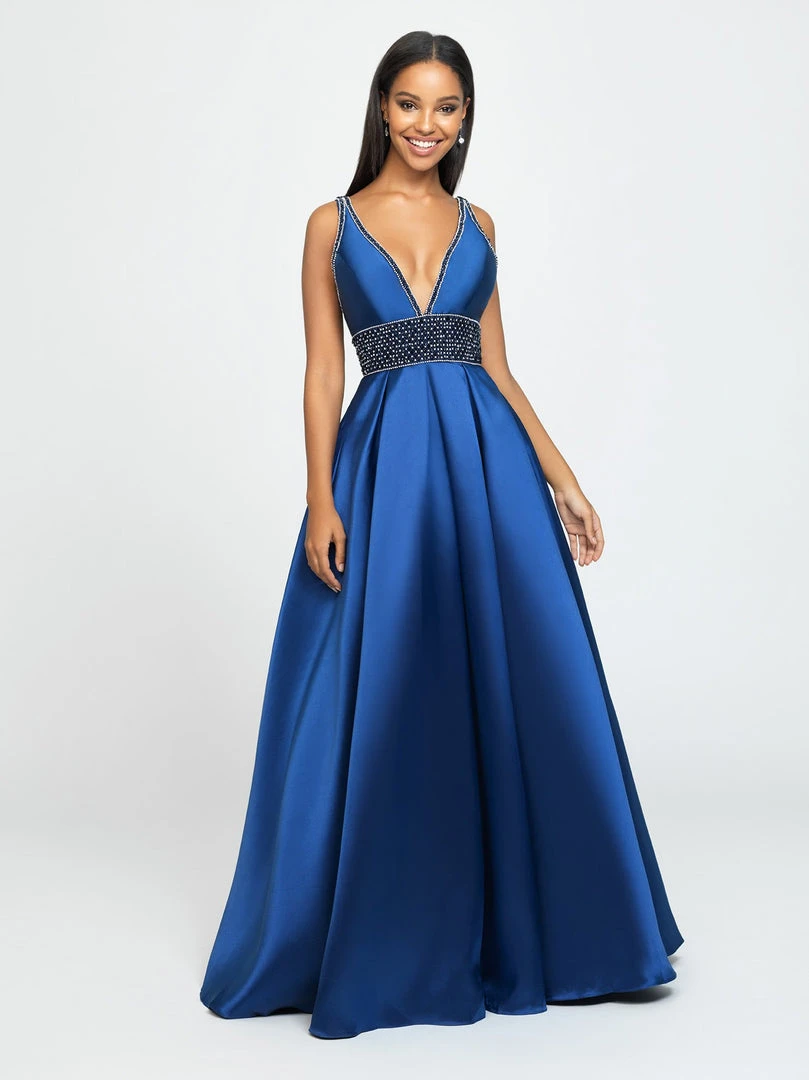 Reveal hidden charms in this lovely evening gown by Madison James 19-206. Made of jersey fabric, this long dress parades in a sleeveless, deep V-neckline with a low V-back. The waist is wrapped in a wide, beaded band and begins to flourish a full length pleated A-line skirt. Exude a charm that is meant to mesmerize the elite crowd in this decadent Madison James dress.