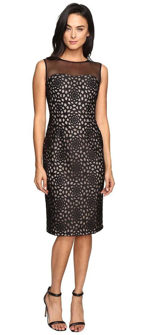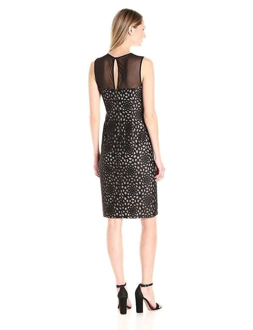 Searching for classic elegance? Maggy London G2721M Sheath Dress has you covered. Its sleeveless illusion yoke tempers the sweetheart bodice curves. The laser-cut scuba wraps this figure flattering dress in a stained-glass pattern. This Maggy London style will give you the perfect balance of sexiness and sophistication.