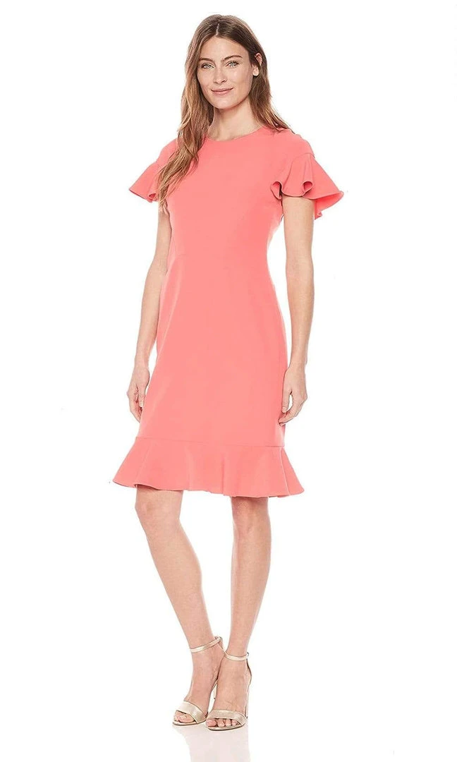 | Details: | Crepe Fabric, Ruffled Short Sleeves, Full Back, Back Zipper Closure, Flounce Hem, Fully Lined, Knee Length |