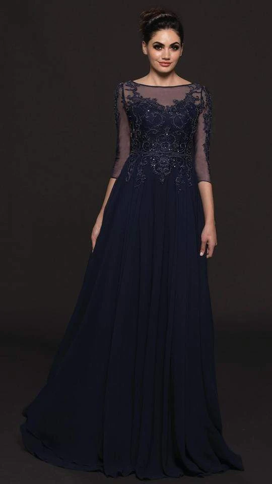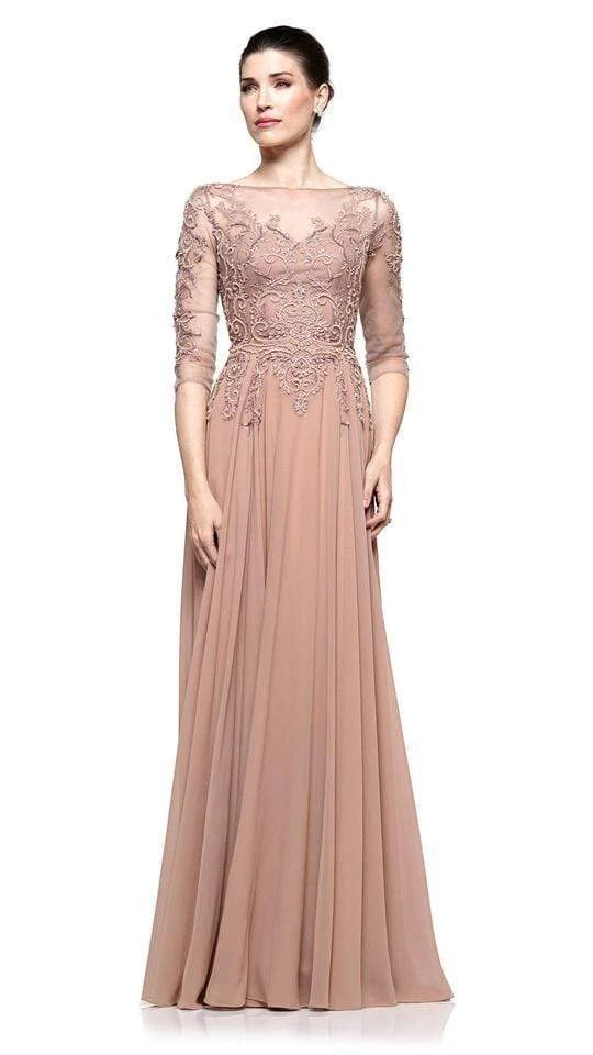 Mesmerize everyone in this charming creation by Marsoni by Colors M214. This elegant dress is designed with quarter length sleeves that is paired with an illusion bateau neckline. The bodice is adorned with stunning embellishments that connects down the waist slowly revealing the pleated details on an A-line silhouette skirt. The back is closed design with illusion details that highlights the centered zipper closure. This Marsoni by Colors dress will definitely bring out the goddess in you!