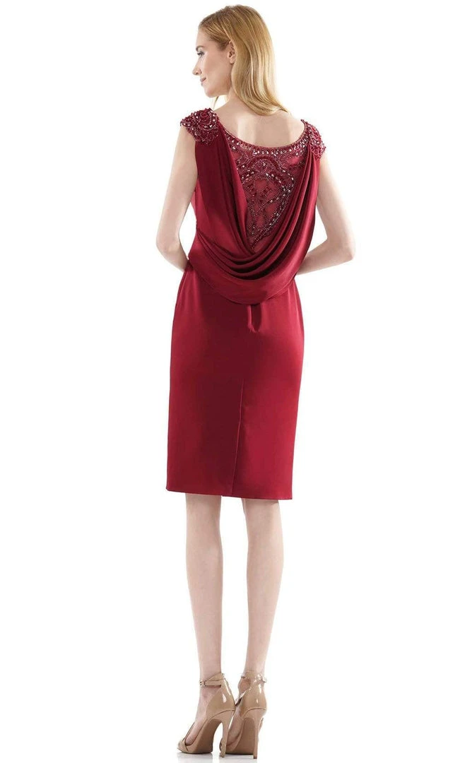 Leave everyone speechless when you enter the room in this Marsoni by Colors MV1109 ensemble. Designed with pleats on the bodice, this stunner showcases a V neckline and beautifully embellished sheer cowl back. The skirt has a sheath silhouette which finishes to the knee length hemline. Bring on the drama in this Marsoni by Colors creation.