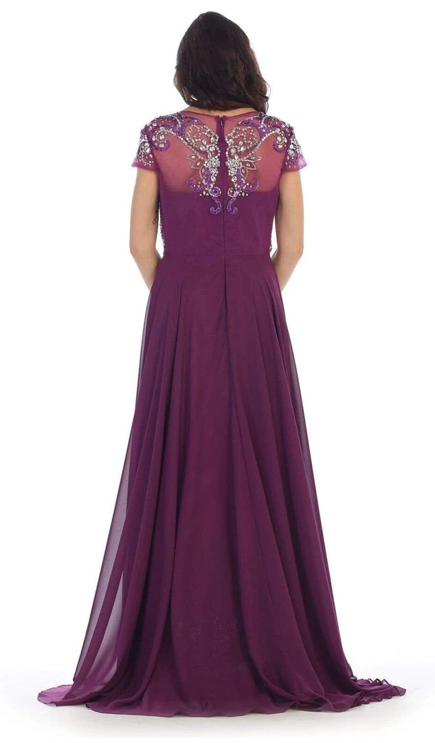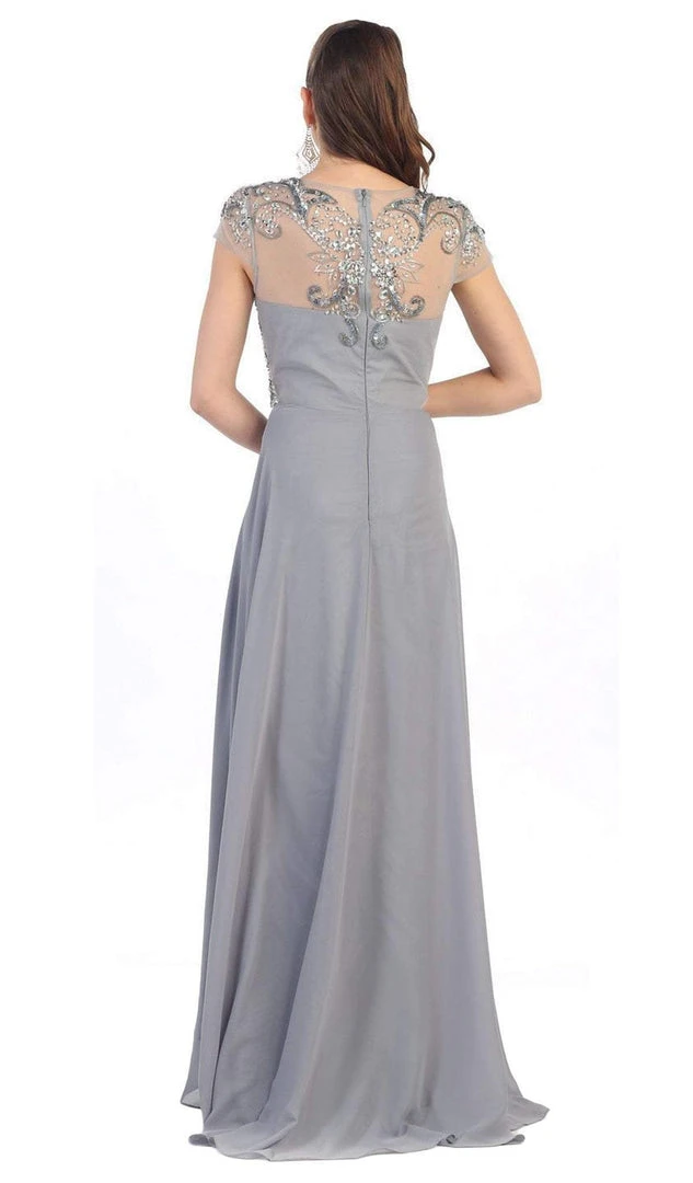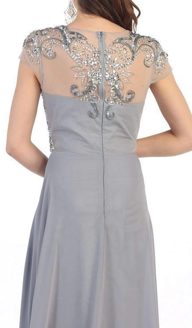 | Details: | Cap sleeves, Bejeweled, A-line Dress, Back zipper |