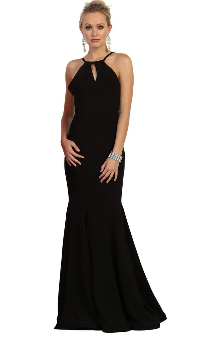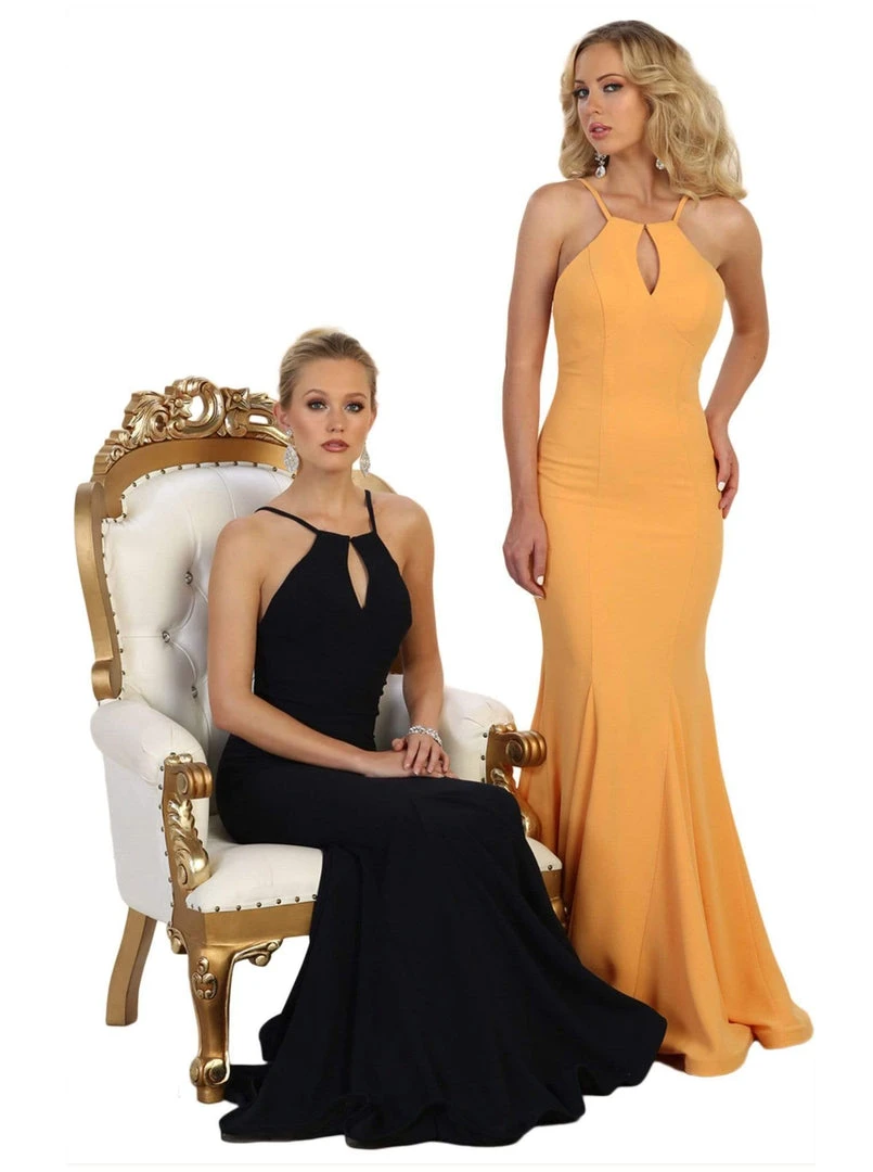 Embrace a sophisticated sensibility without sacrificing allure in this May Queen MQ1578 creation. Sculpted with seams to create a cut-in design while accenting a keyhole cutout, this chic piece presents a halter neckline and a crisscross-strapped open back. The trumpet skirt shows a tailored cut that skims over the hips and ends in a wide flaring flourish and a sweep train. Reveal a tasteful style as all eyes gravitate towards you in this May Queen masterpiece.