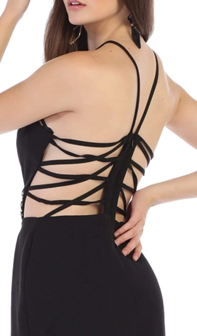 May Queen – RQ7660 Strappy Bejeweled Waist Halter Gown Formal Gowns