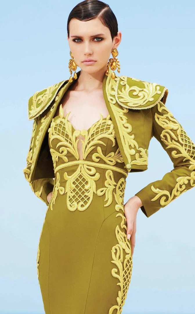 Soar to new heights of fashion in this heavenly dress by MNM Couture 2348. The dress comes with a long sleeve bolero that accents the sweetheart bodice with embroidery. The dramatic mermaid skirt flares at your legs with pleating and a wide train. This MNM Couture look is specially designed to make that special occasion worth reminiscing.