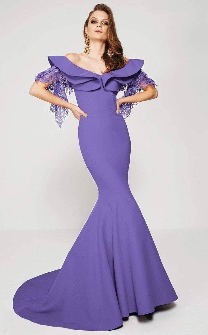 | Details: | Off shoulder, Mermaid skirt, Lace appliques, Layered details, Bow detail at the back |