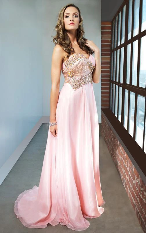 | Details: | Ruched bust, Beaded details, A-line skirt, Sweetheart neckline, Strapless, Back zip closure |