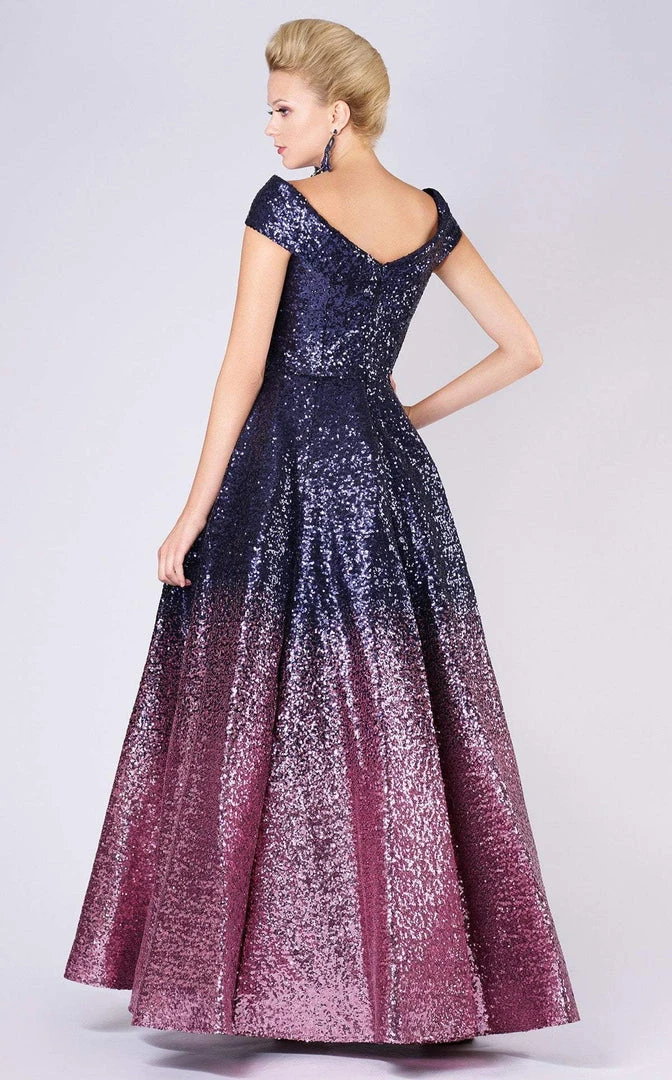 Make an extraordinary statement when you walk in this ultra fetching MNM Couture M0009 evening gown. This radiant allover sequin gown is for those who love to sparkle and shine! The top has flapped off the shoulder neckline with notch at the center concealed by a sheer mesh inset. The skirt is pleated with transforming ombre hue giving this gorgeous A-line silhouette a magical color illusion effect. Shine with the glow of ever after in this mesmerizingly stunning gown by MNM Couture. Model is searing the Navy/Fuchsia color.
