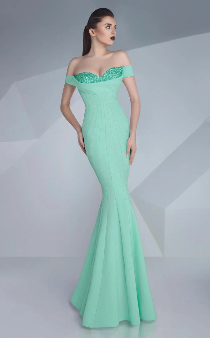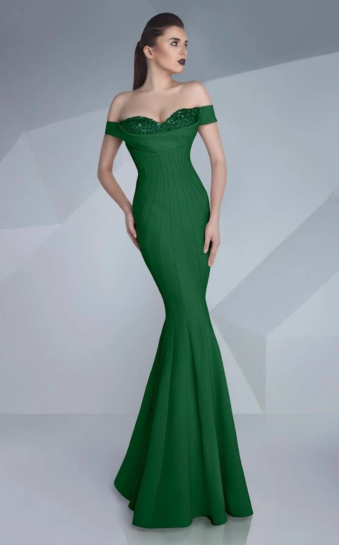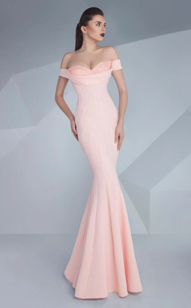 Lavish yourself in pure decadence at your special party in this high-class MNM Couture G0592 creation. Flourishing an array of multi-faceted beads lining the sweetheart notch detail, this spectacular piece showcases a folded off-shoulder neckline that traverses to a mid-open back. Showcasing sectional seams that navigates from the bodice, the mermaid skirt sculpts every feminine contour with exquisite taste as it flares down to a full-length hem and ends at a sweep of train. Look irresistibly ethereal in this glamorous MNM Couture masterpiece.