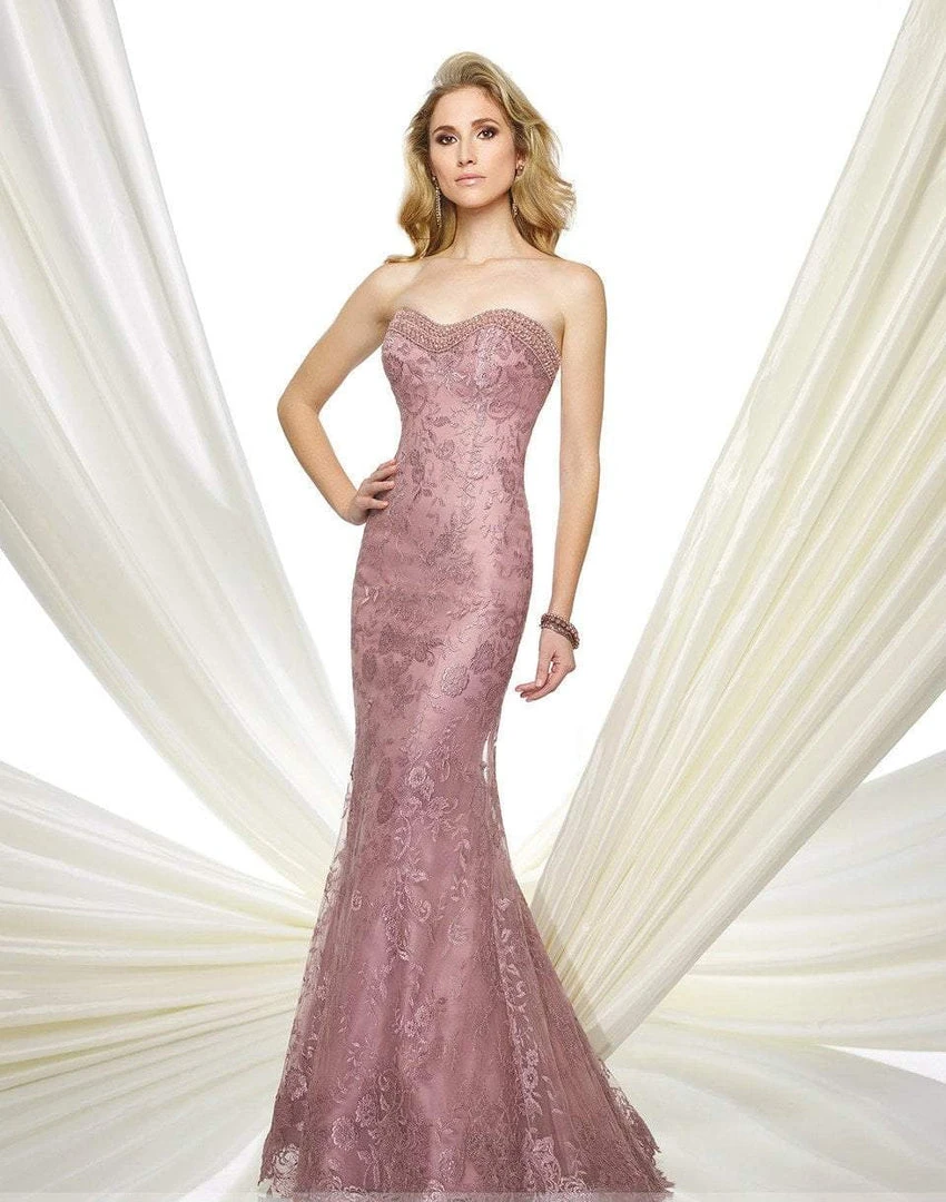 Formal Gowns Cinderella Divine – Strapless Bejeweled Chiffon A-line Gown