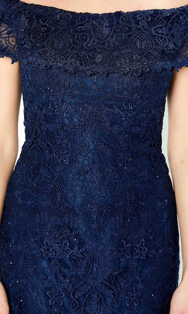 Be the delight of everyone’s eyes in Montage by Mon Cheri 220947. This gown presents an off-shoulder neckline and a fitted silhouette in beaded lace. Accented with crystals, you’ll shine among the crowd. It comes with a shawl and finished with sweep train. Another great creation by Montage by Mon Cheri.