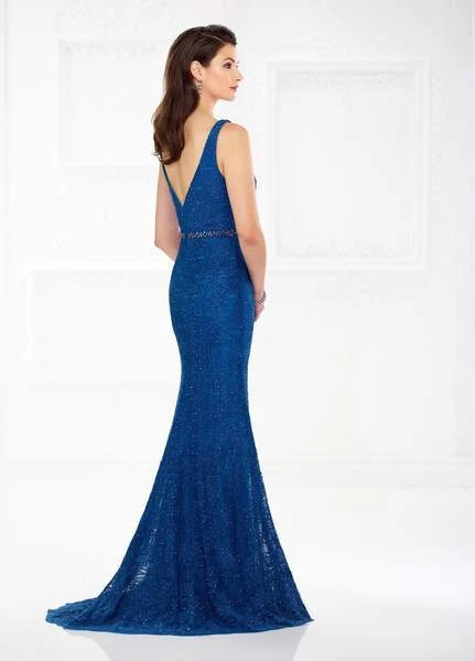 | Details: | Beaded lace gown, Matching long-sleeved jacket, Sleeveless, Beaded waistband, V-shaped back, Back zipper closure, Sweep train |