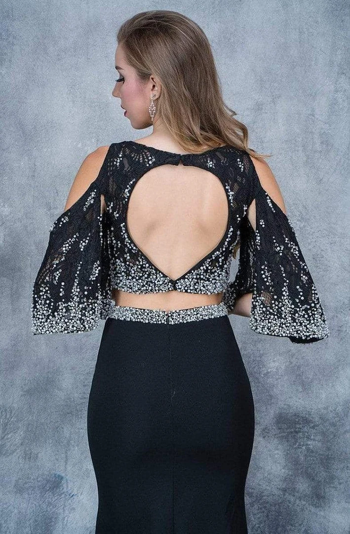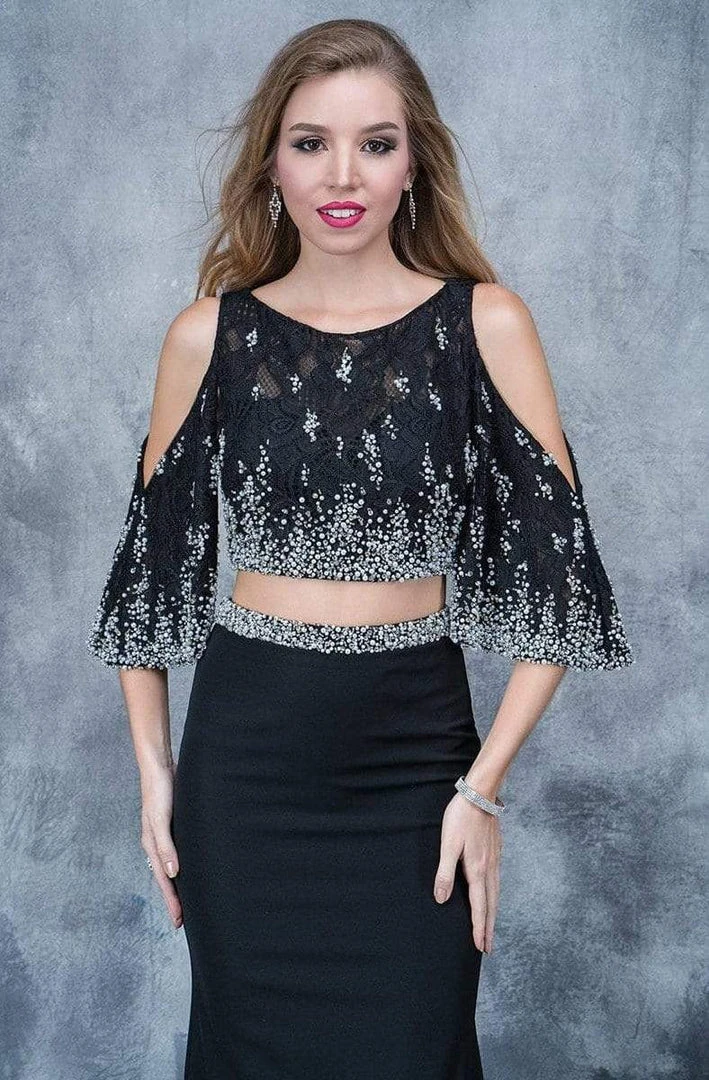 You will look stunning in this floor-length two-piece Nina Canacci 1354. This two piece ensemble showcases an illusion bateau neckline with cutaway quarter length sleeves. The bodice is designed with lace and bead embellishments that extend to the back cutout. The sheath skirt is embellished at the band and runs in full length hem. Back zipper closure. This Nina Canacci creation is simply perfect for your next formal party!