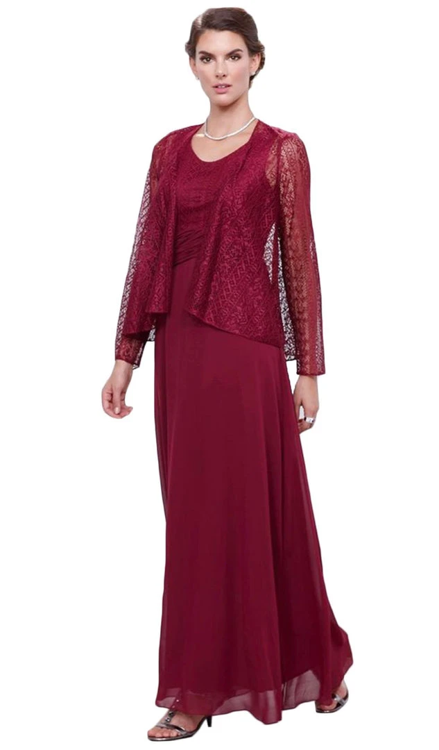 Glow as you walk in this long sleeveless lace dress with long-sleeved jacket by Nox Anabel 5138. Showcases a sleeveless, scoop neckline with bodice adorned with lace appliques, a ruched waistband, full length A-line skirt. The dress includes a matching lace jacket and a zipper closure. This Nox Anabel dress is a perfect choice as a Mother of the Bride dress or for any formal event!