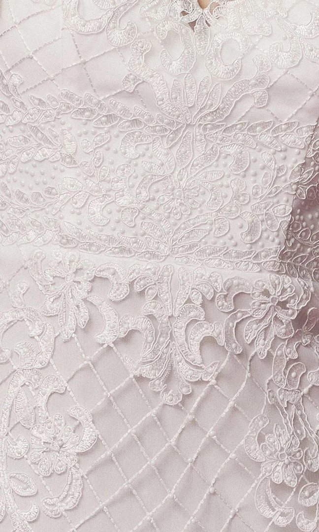 Enchant everyone by the fascinating style of this Nox Anabel Bridal A398W bridal dress. Fashioned with a sheer tulle overlay with an intricate embroidered details and beadwork, this piece flatters with a sheer v-neckline with a sweetheart lining. Crafted with a sheer v-open back with a zipper closure, this darling promotes a mermaid silhouette with a spills into a sweeping denouement. Revel in the beauty and elegance on your special day in this Nox Anabel Bridal masterpiece. This stunning collection of Nox Anabel dresses will reflect your personality and give you an elegant red-carpet look. Model is wearing the White color.