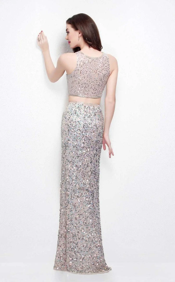 | Details: | Halter neckline, Sequined, Two piece dress, Side slit skirt, Sleeveless, Sheath skirt |