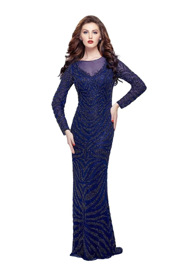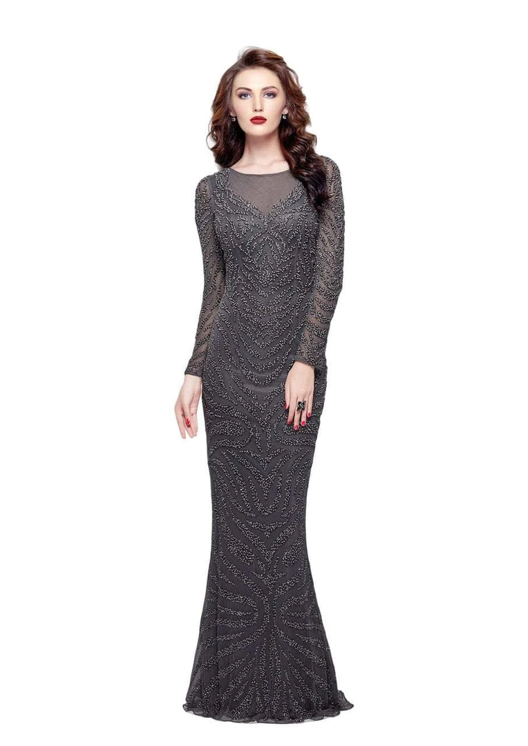 | Details: | Sheer long sleeves, Illusion neckline, Beaded, Closed back, Back zipper closure |