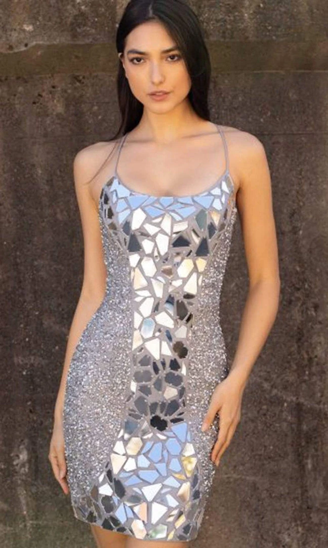 Have fun in this fashionable cocktail dress by Primavera Couture 3512. This fully beaded short party dress has cut-glass accent adorning the center, showcasing a sleeveless fitted bodice with scoop neckline and an equally ravishing open back with spaghetti lace-up strap support. Radiate a sultry and sparkling allure all night long with this spectacularly Primavera Couture mini length dress.