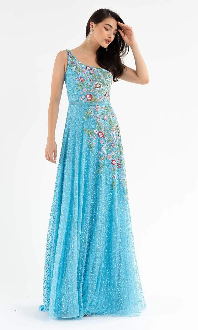 | Details: | Beaded, Fully Beaded, Sequins, Sleeveless, Asymmetrical Strap, Back Zipper, Open Back, One Shoulder, Asymmetric Neckline, Floral sequins, Embellishment, Strappy back, Ballgown, Sweep Train |